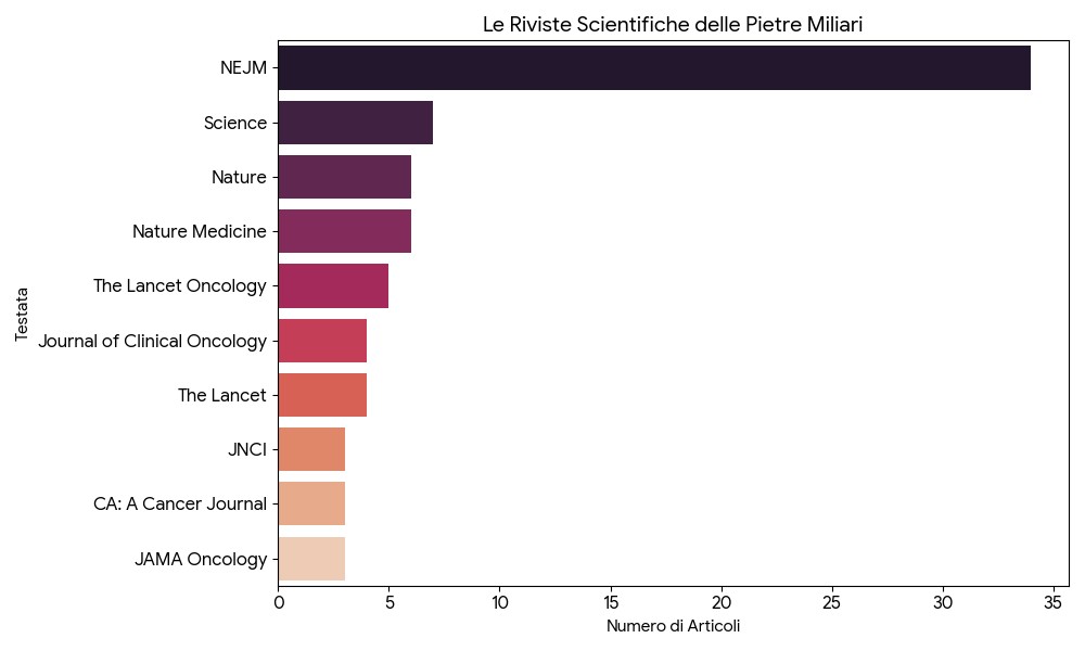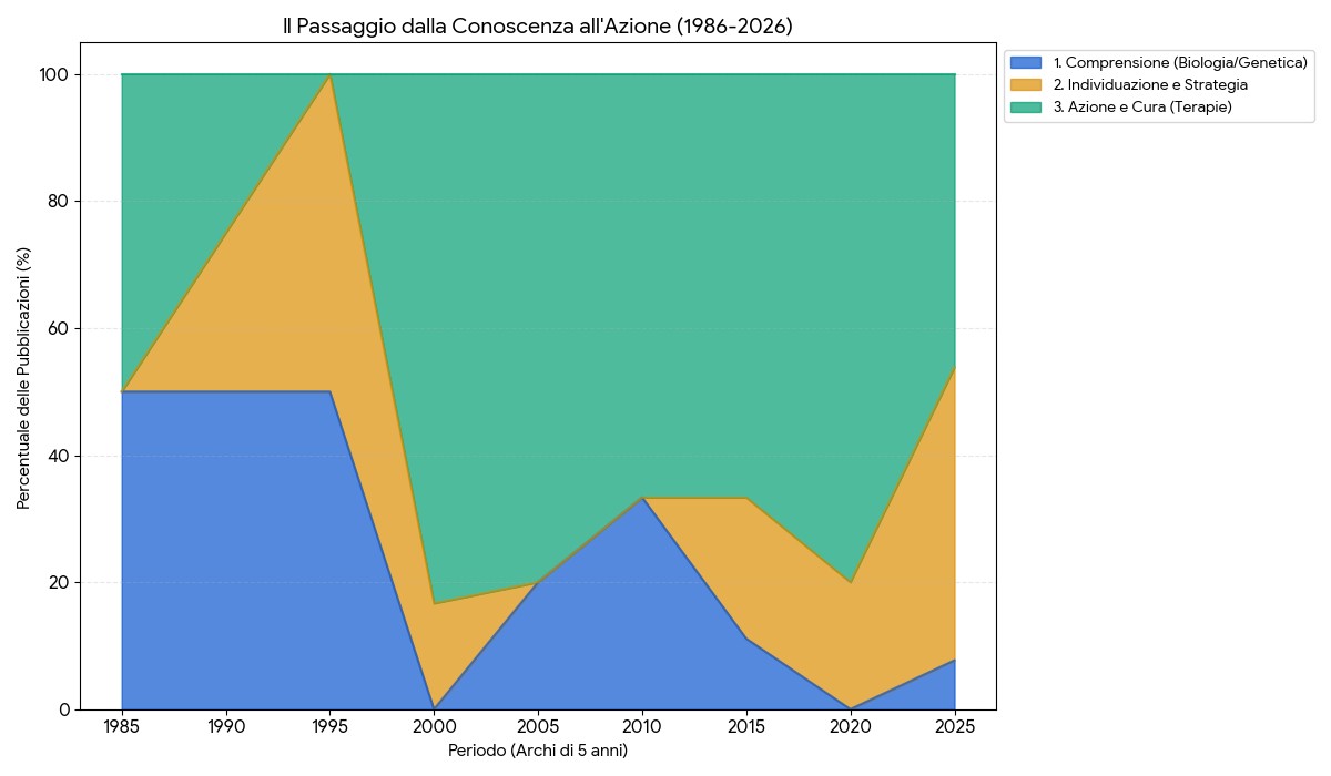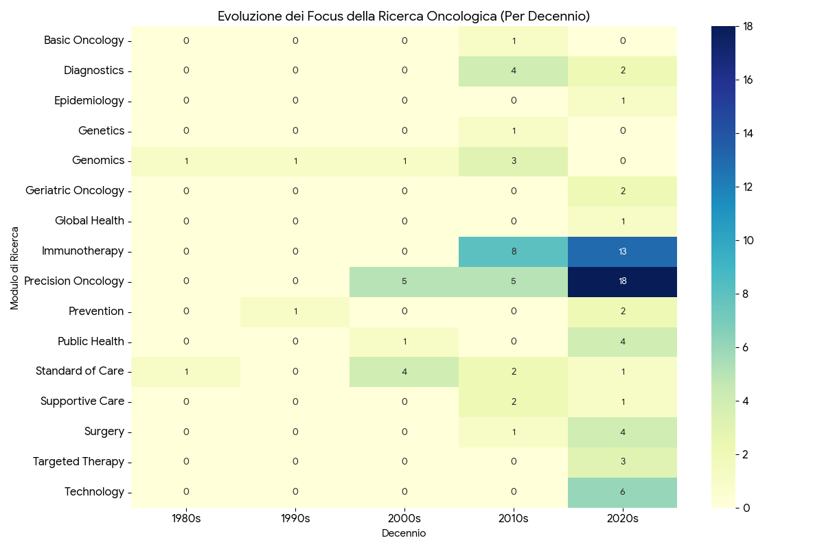 Abbiamo selezionato e analizzato i 100 studi scientifici che hanno cambiato il paradigma della cura: dalle prime scoperte genomiche degli anni ’80 fino alle rivoluzioni dell’intelligenza artificiale, delle biopsie liquide e dei degradatori proteici (PROTAC) del 2025-2026. Attraverso il CTKA, offriamo a pazienti, medici e ricercatori uno strumento unico per decodificare la complessità del cancro, trasformando i dati grezzi in percorsi di conoscenza chiari, strutturati e accessibili.